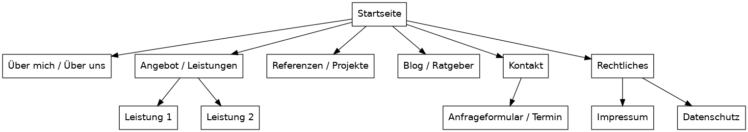 Hier ist eine einfache Skizze für eine klassische Business-Website mit 5–7 Seiten.